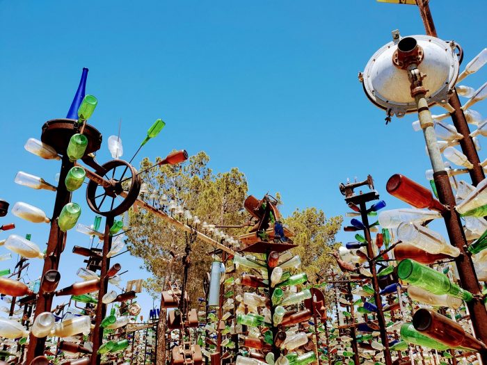 Looking for a quirky and offbeat attraction in Southern California? Look no further than Elmer’s Bottle Trees Ranch, located in the small town of Oro Grande. This hidden gem is just a short detour off Route 66 and is a must-visit for anyone passing through the area. Elmer Long, the creator of this unique art installation, welded together over 200 metal poles and adorned them with colorful glass bottles, creating a whimsical forest of “trees.” It’s a great place to stop for a quick photo op or to stretch your legs on a long road trip. Best of all, admission is completely free! So, next time you find yourself driving along I-15 en route to Las Vegas or the Mojave National Preserve, be sure to make a pit stop at Elmer’s Bottle Trees Ranch.